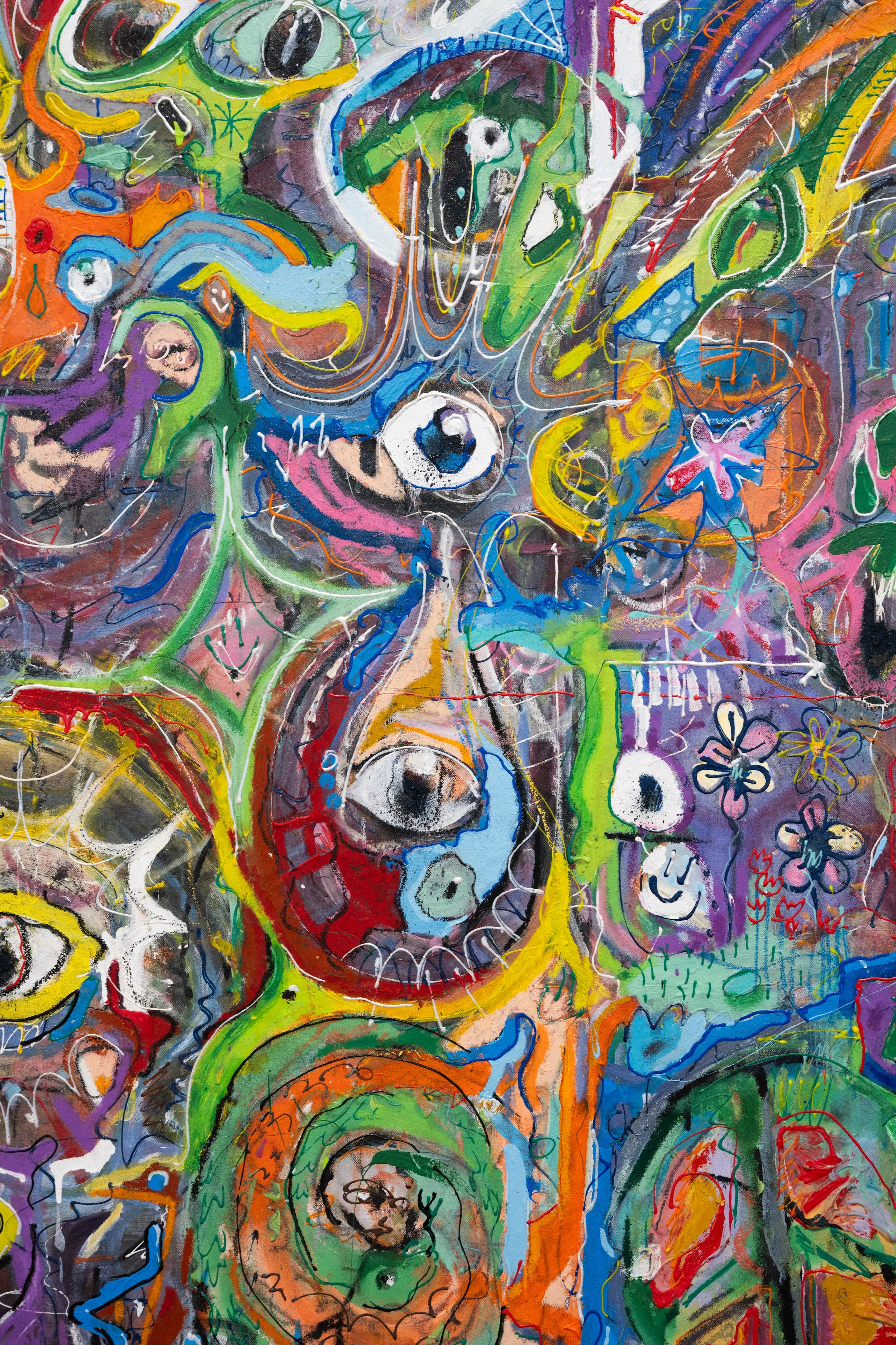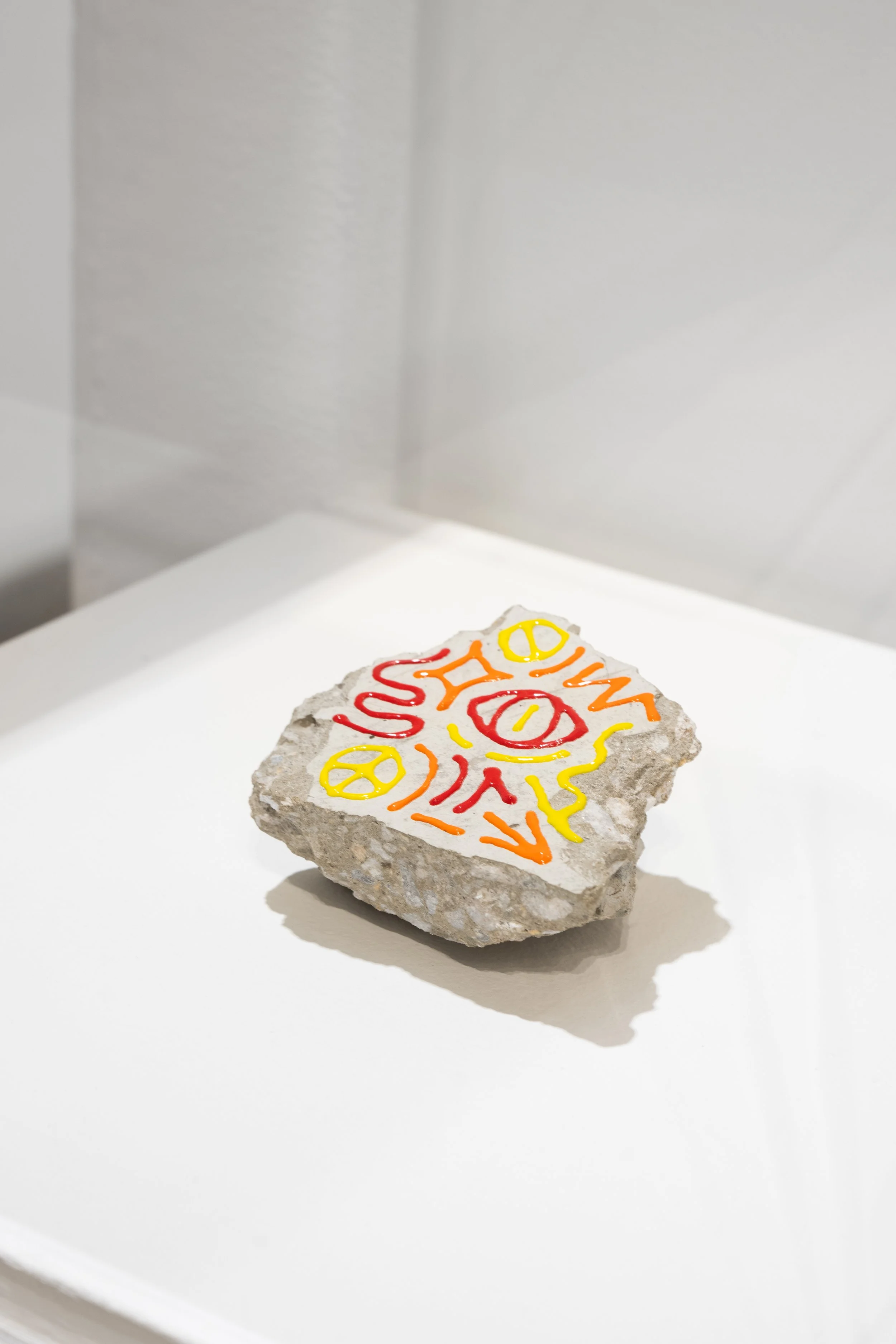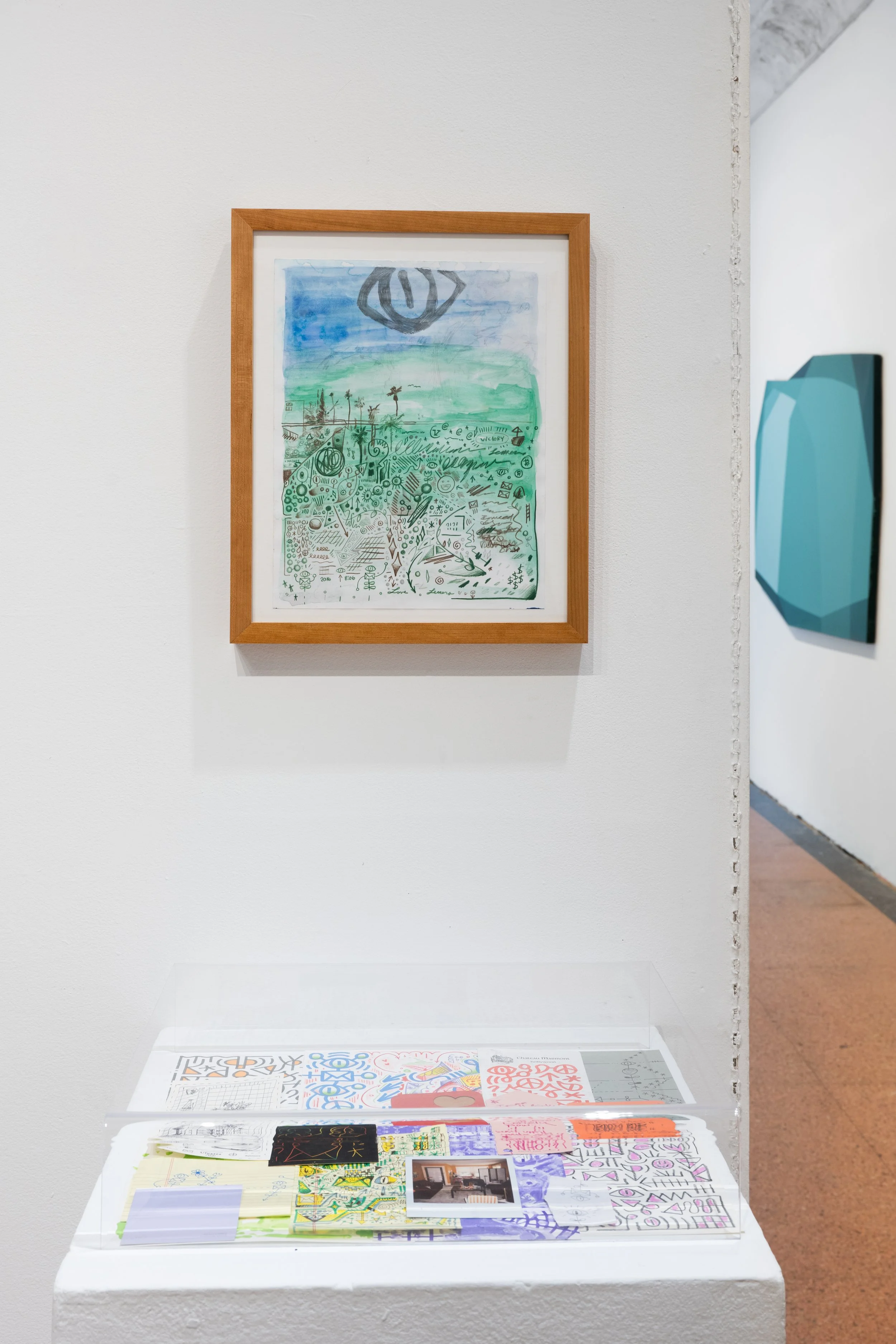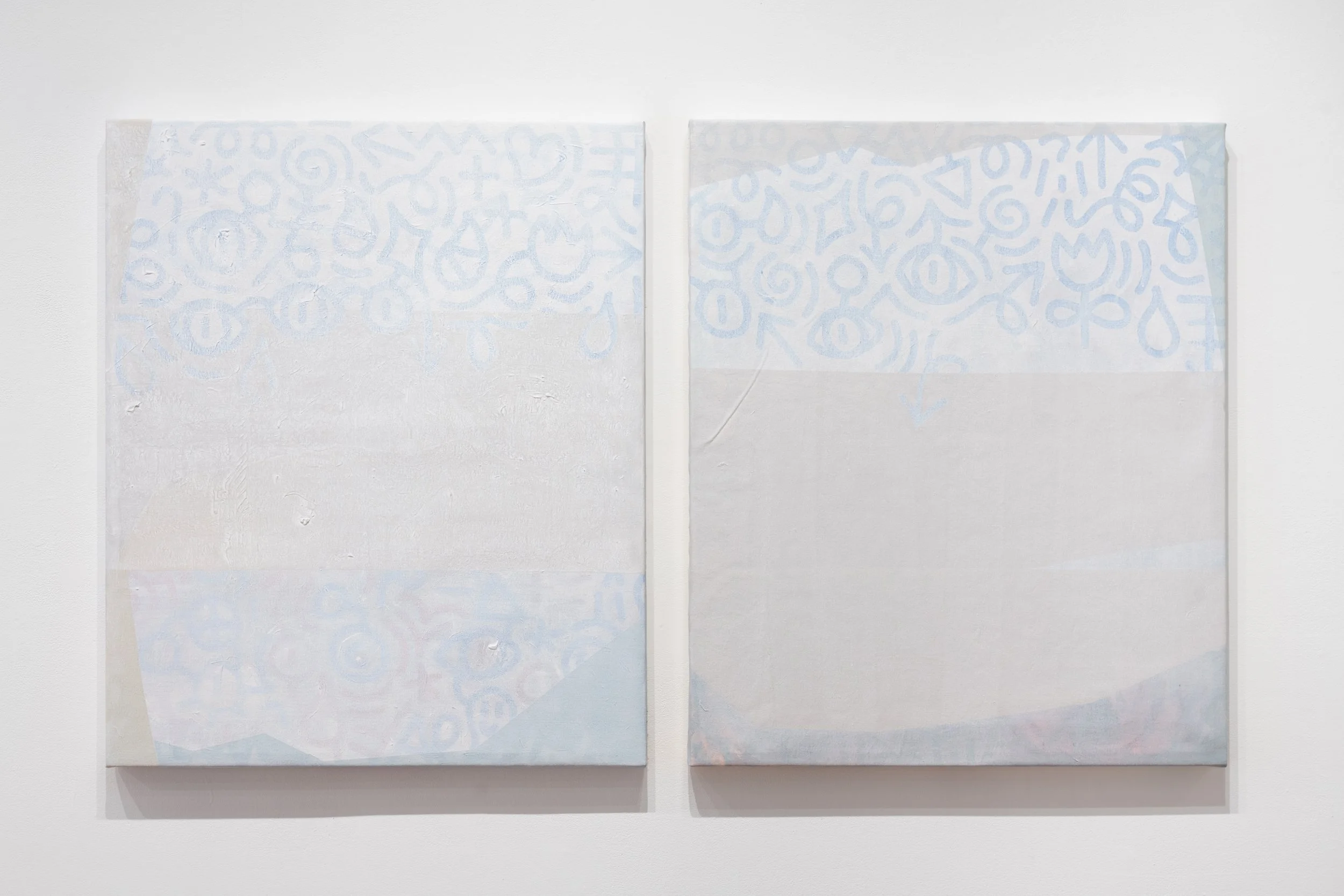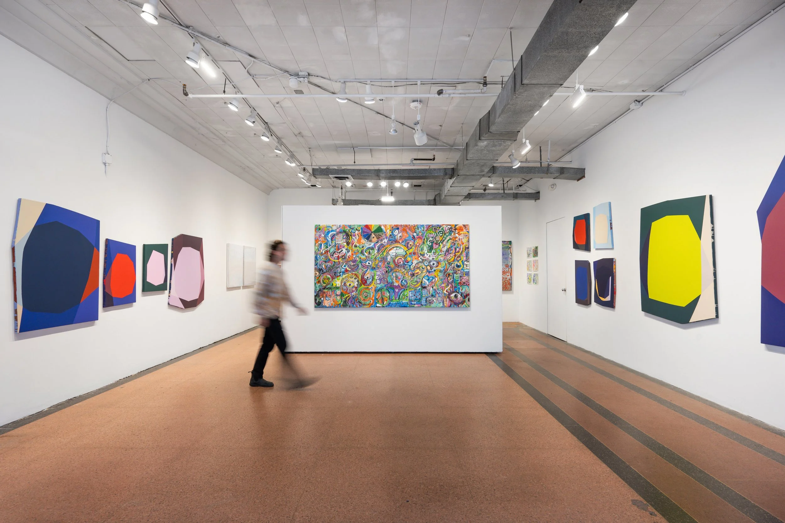 Vinnie Hager’s intricate compositions use dense, symbolic language to map the contours of his internal experience. In contrast, Emma Childs creates minimalist, architectural sculptural paintings that act as containers for emotion, memory, and perception.